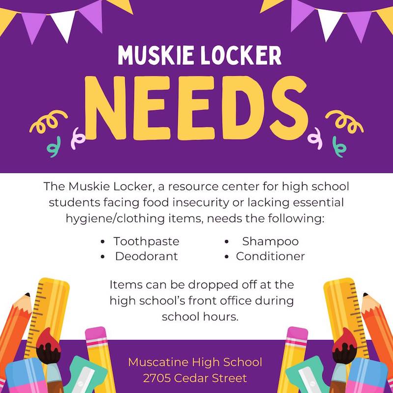 The Muscatine Community School District is asking for community help to restock essential hygiene items for students in need at Muscatine High School.