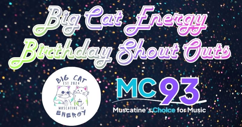To get a shout out for your birthday, or if you want a friend or family member to get a shout out for their birthday, scroll down and enter the information in the Birthday Form. Then, listen every weekday morning at 7:40 am to MC Mornings with Connor Kenney for that days birthday shout outs, powered by Big Cat Energy! Every week, one person from that week’s birthday shout outs will win a prize from Big Cat Energy, 801 Oregon St. Suite 13, in Muscatine.