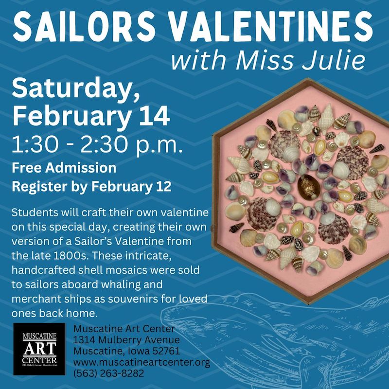 Students will craft their own valentine on this special day, creating their own version of a sailors valentine from the late 1800s. These intricate, handcrafted shell mosaics were sold to sailors on whaling and merchant’s ships as souvenirs for loved ones back home. Register by February 12.