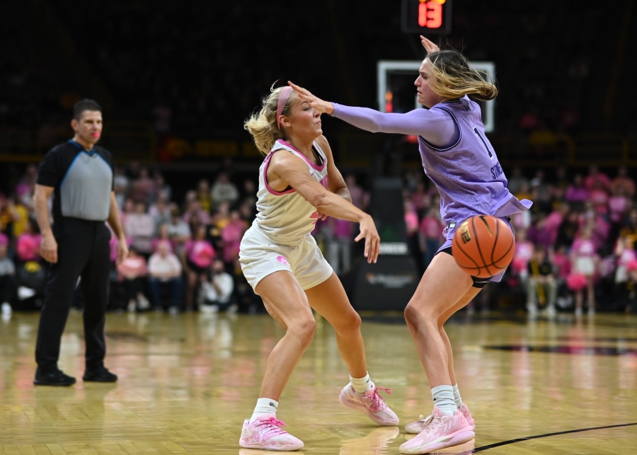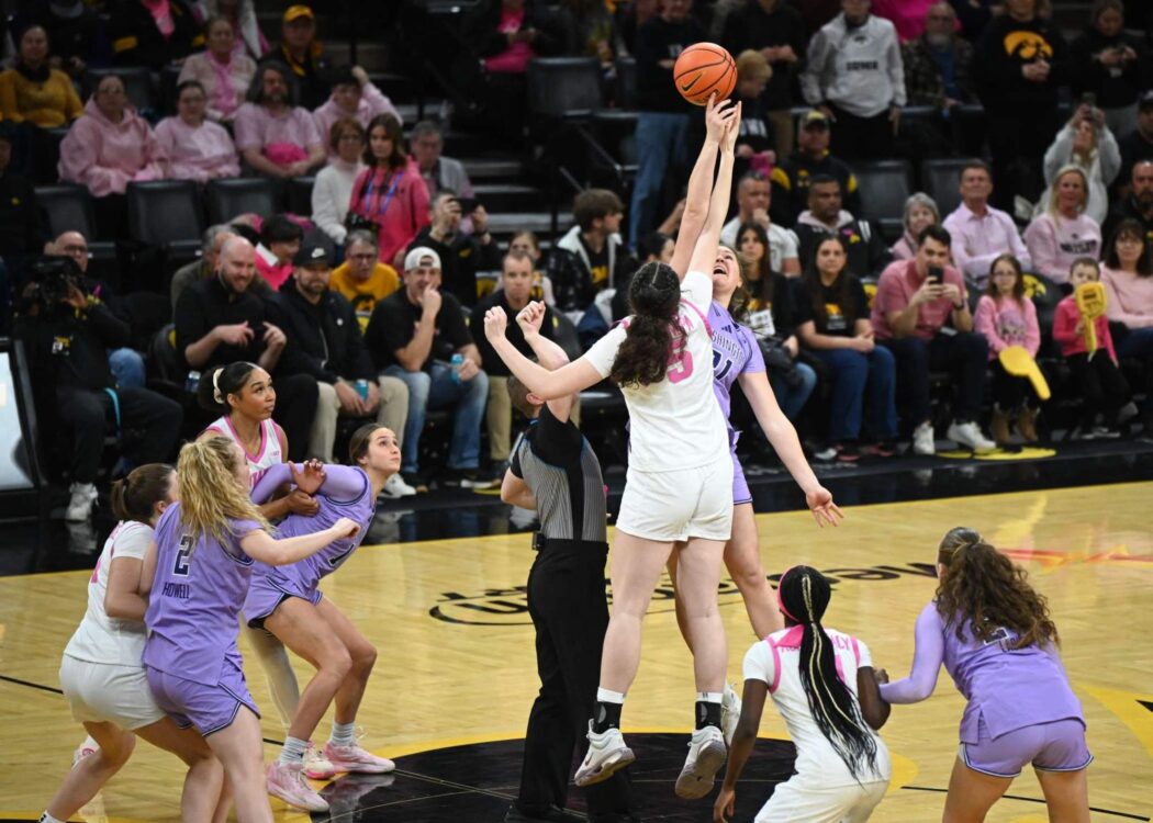Chit Chat Wright and Hannah Stuelke took over the game with three pointers and rebounds leading Iowa to a hard fought defensive win. Wright had 21 points going 6-for-13 from the field, 5-of-8 of those from beyond the arc, and four assists. Senior Hannah Stuelke followed with her seventh double-double of the season on 14 points and a tied career-high 16 rebounds. “I just think they needed it for their psyches. They needed to feel that (winning feel) again. It’s been tough (lately),” said head coach Jan Jensen. “Getting one after we’ve lost a few and then getting it when you’ve reformed (with Taylor McCabe out), I think it was really big…I think it was big for the confidence level (of the team).”