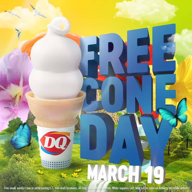 Dairy Queen is celebrating its annual Free Cone Day on March 19, offering customers a free small vanilla soft-serve cone at participating locations nationwide.