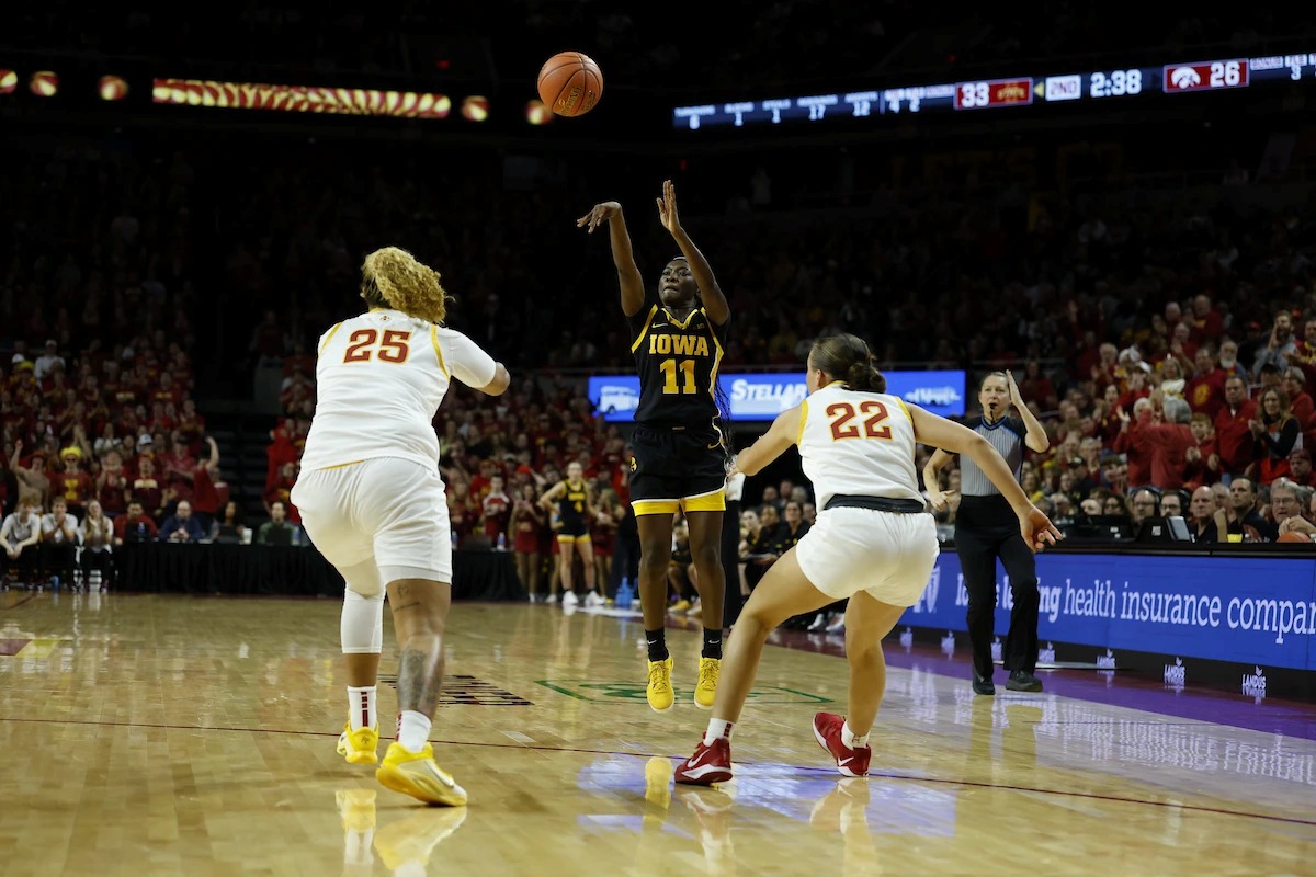 In a game of steaks, Iowa State and Audi Crooks outlasted Iowa 74-69. After a even first half, the Cyclones dominated the third quarter to go up 17 at one point behind the relentless inside play of Crooks. She had 12 rebounds and most of her 30 points were deep in the paint.