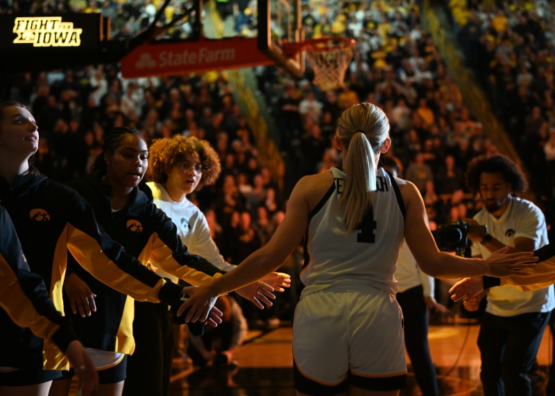 The game started evenly matched on the floor. The Hawkeyes post players started strong with Stuelke and Heiden combining for 10 points under the hoop. Wright closed a hard fought first quarter with a buzzer-beating three-point basket to put the Hawkeyes up, 22-16.