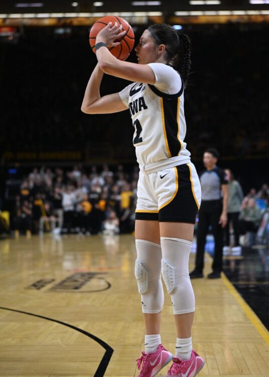 After Iowa built its largest lead of 17 points four minutes into the third quarter, the Spartans wouldn’t simply roll over or go away. Instead, MSU closed to within five points with 3:28 remaining. But a crowd baseline jumper to beat the shot clock by Stuelke and terrific defense the rest of the way keyed the Hawkeyes’ 75-68 victory. After that Iowa allowed only two points in the final minutes to secure the win and stay in a tie with UCLA for first place in the Big Ten.
