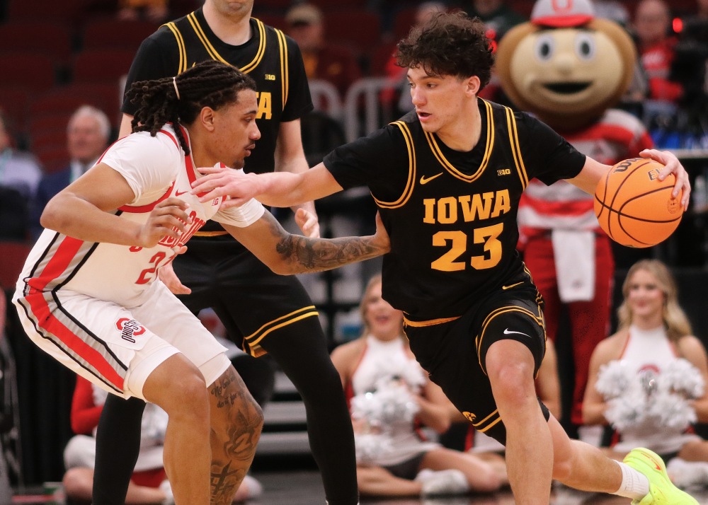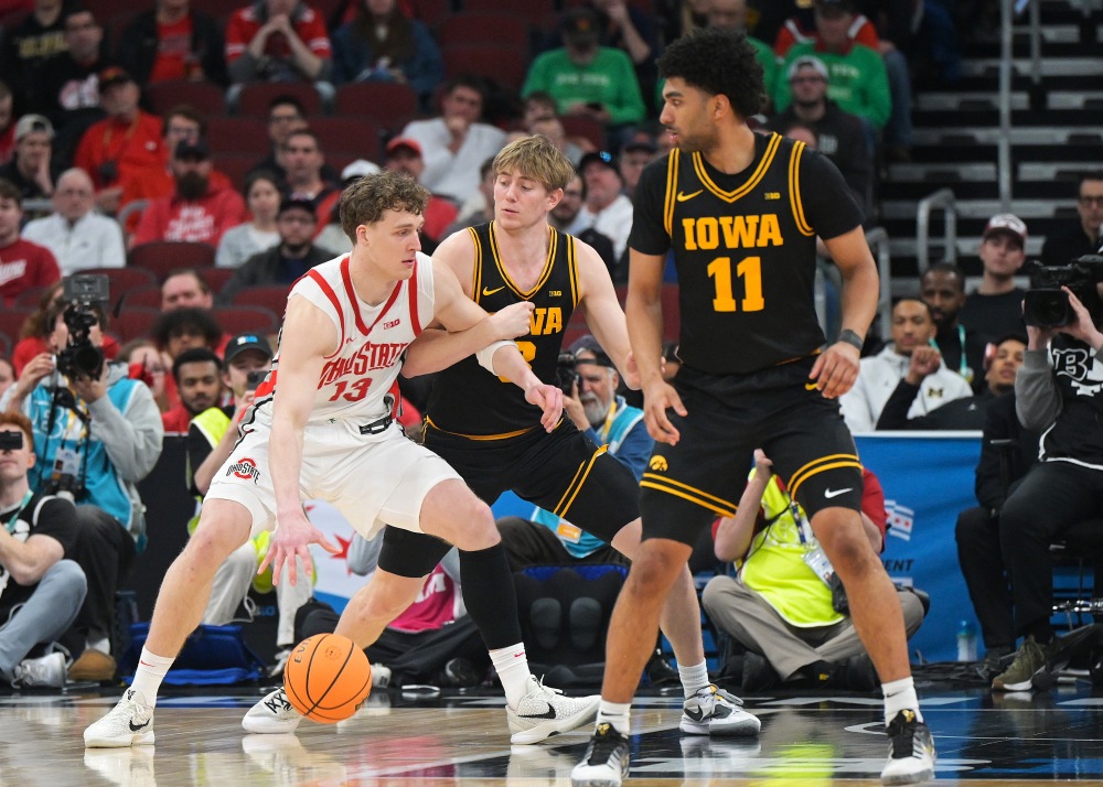 Iowa dug itself a hole in the early part of the first half and almost found their way out but Bruce Thornton and the Buckeyes wouldn’t allow it to happen. Thornton hit three after three to put Ohio State up 16 with 13:55 left. After an Iowa timeout the Hawkeyes fought back behind Bennett Stirtz and defensive pressure. Unlike yesterday’s game though, nobody else scored in double digits for Iowa and yesterday’s star Cooper Koch was not a threat with only eight points. For much of the game Ohio State was shooting over 60% from the field and ended up shooting 55% while Thornton and center Chris Tilly kept Ohio State hot.