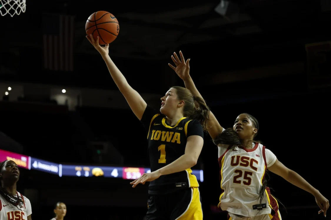 USC looked like the Top 10 team as they outshot and out hustled No. 8 Iowa in a 81-69 win Thursday night. The Trojans snapped Iowa’s 8-game winning streak in Los Angeles on Thursday night. Freshman Journey Houston led the Hawkeyes on the day with a career-high 16 points, eight rebounds, and two assists. Sophomore Ava Heiden followed behind with 13 points, going 6-for-11 with eight rebounds and an assist.